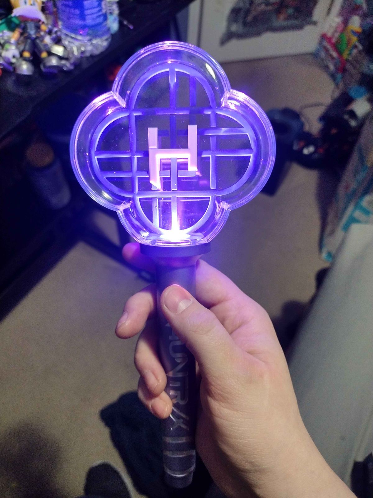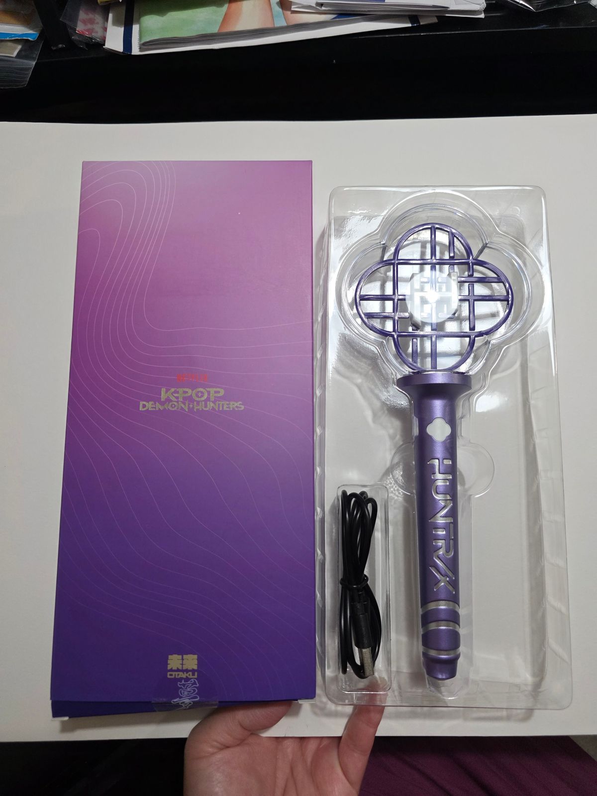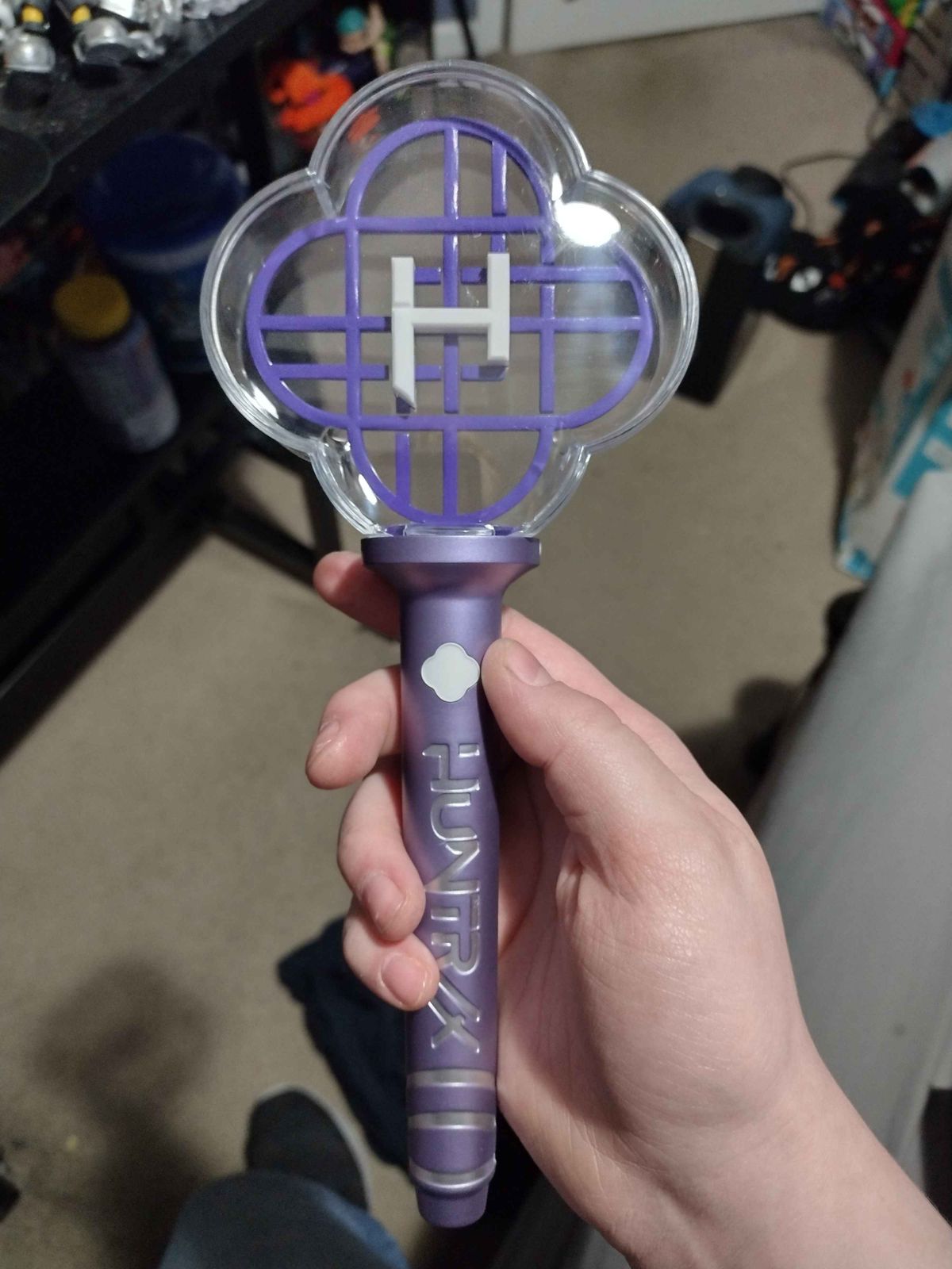 Looks just like the light sticks from the KPop movie. Beautiful purple light and has 3 light modes. Very comfortable to hold and light weight. Fun to use during KPop movie.