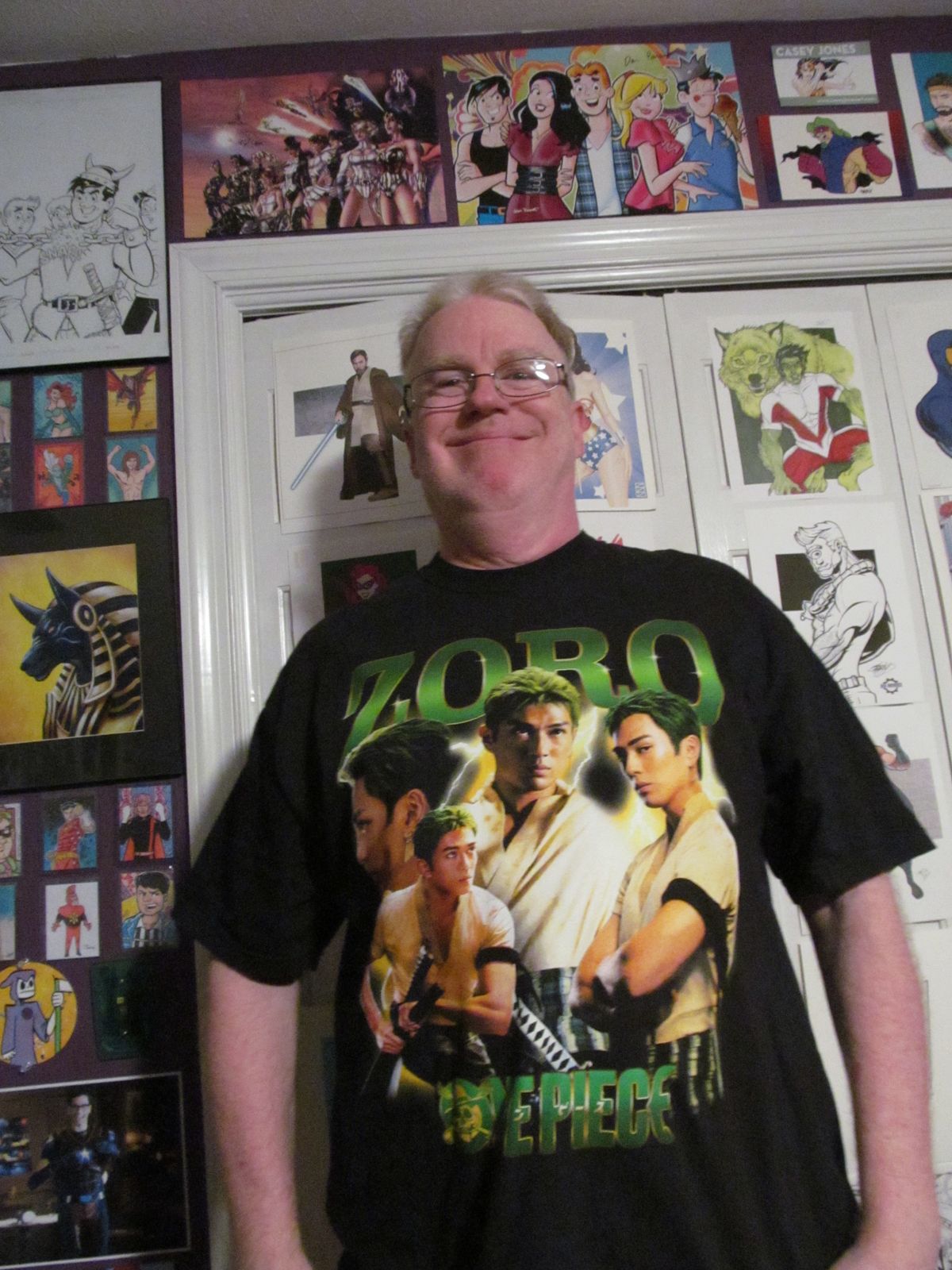 I love this shirt, both the design and the comfort of the shirt. It is soft and comfortable to wear. As a fan of the live action One Piece, and Zoro being my favorite character, I was thrilled to find this awesome shirt!