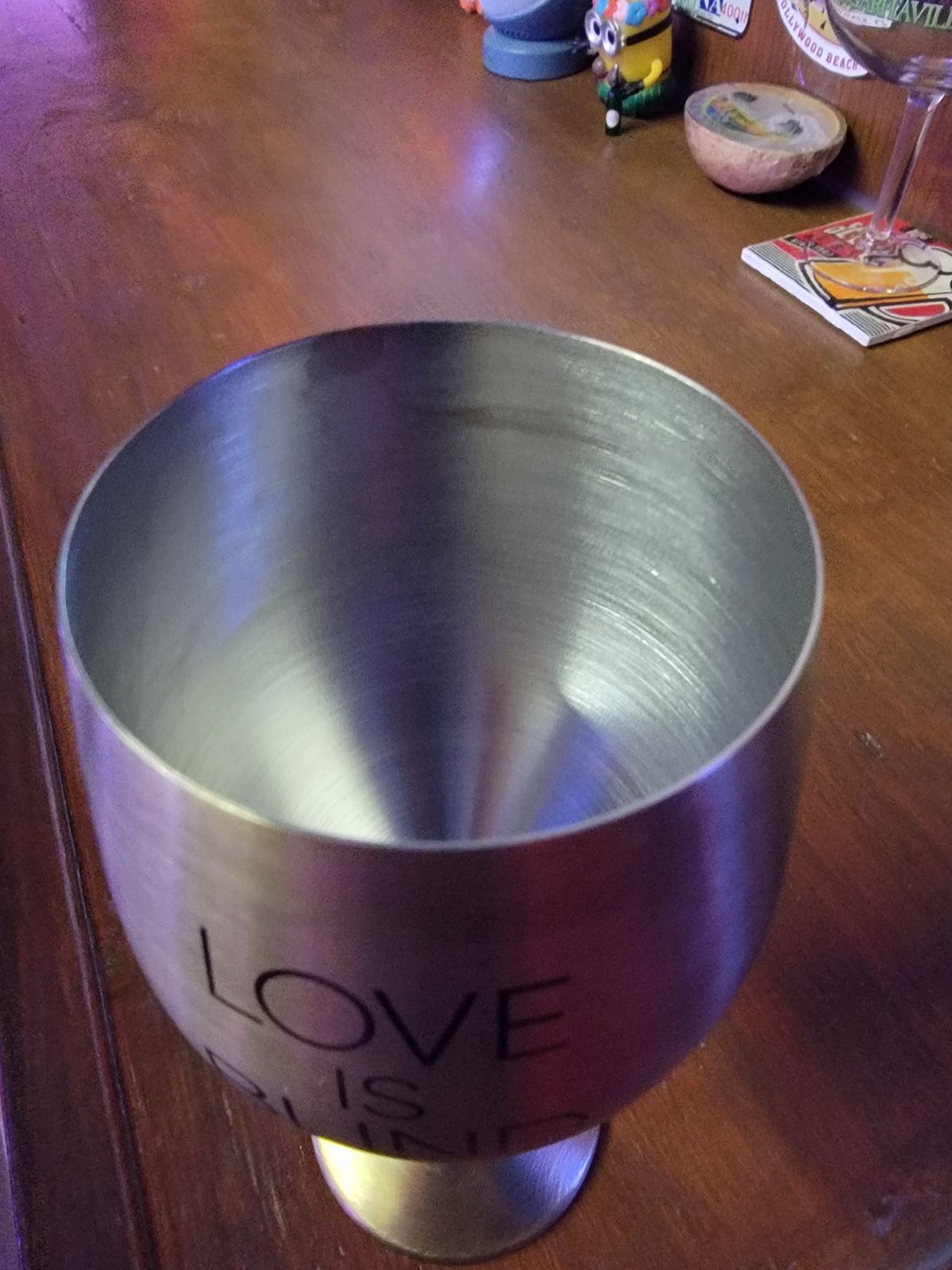 I have been wanting this goblet for many years now, and I am so happy I finally got it. It delivers everything I wanted and more. Size is perfect and stays cold! The only thing I would change is the bottom; I wish it had a cover or piece to cover the bottom part.