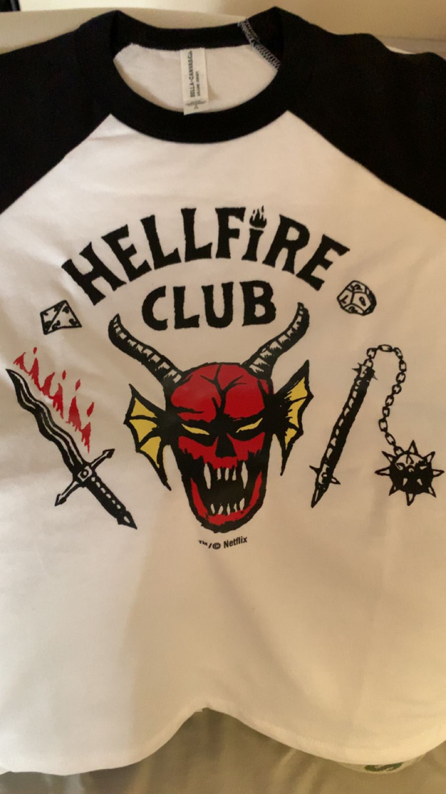 Unleash your inner Dungeon Master with The Hellfire Club Raglan Shirt, as seen on Eddie Munson inStranger Things—because who doesn’t want to roll for initiative in style? Whether you're summoning the Demogorgon, strategizing your next campaign, or just rewatching your favorite episodes (we're right there with you), this shirt has got your back. So, grab yours, and join the crew in Hawkins!